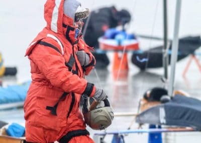 The biggest story so far of this regatta is that the 9 member Polish team were forced to scramble to find boats to use because their equipment was stranded in France. North American sailors have found boats and components for the Polish team to use.