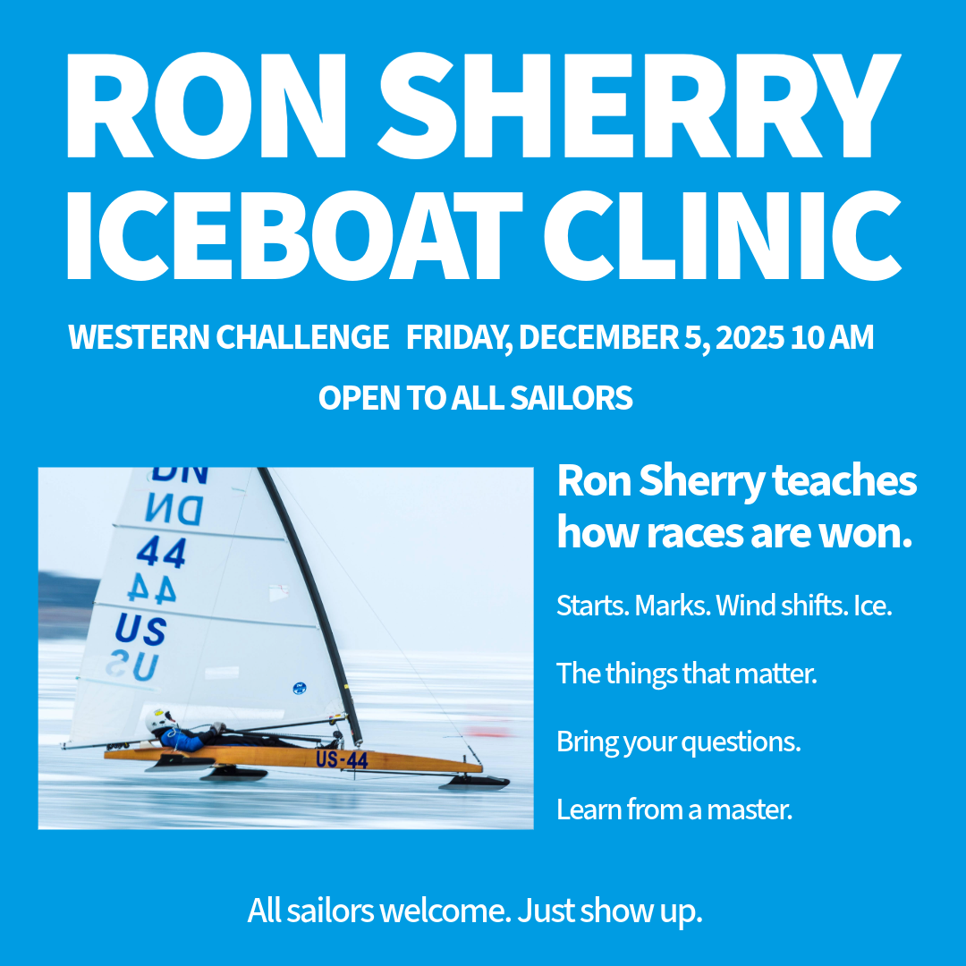 Ron Sherry will hold a racing clinic on Friday morning during the Western Challenge. The session is open to all sailors and focuses on the core skills that make a difference on the ice.